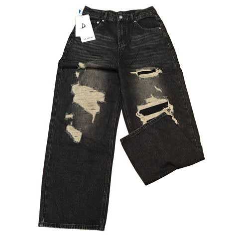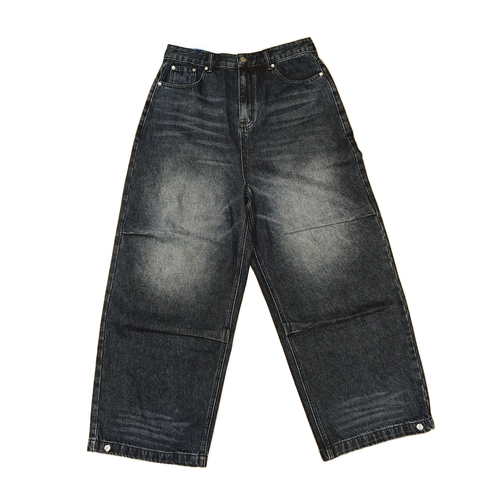 جينز كلاسيكي كلاسيكي للجينز-غسيل أسود ممتاز مع تفاصيل عتيقة بالأسى