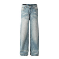2025 Nieuwe Heren Gewassen Blauwe Koe High-End Stof Heren Wijde Pijpen Jeans Fabriek Groothandel